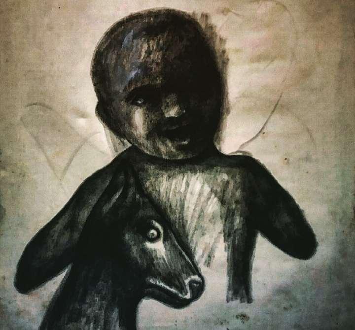 El niño y el perro. Óleo sobre lienzo. 60x70 cm. 2023.