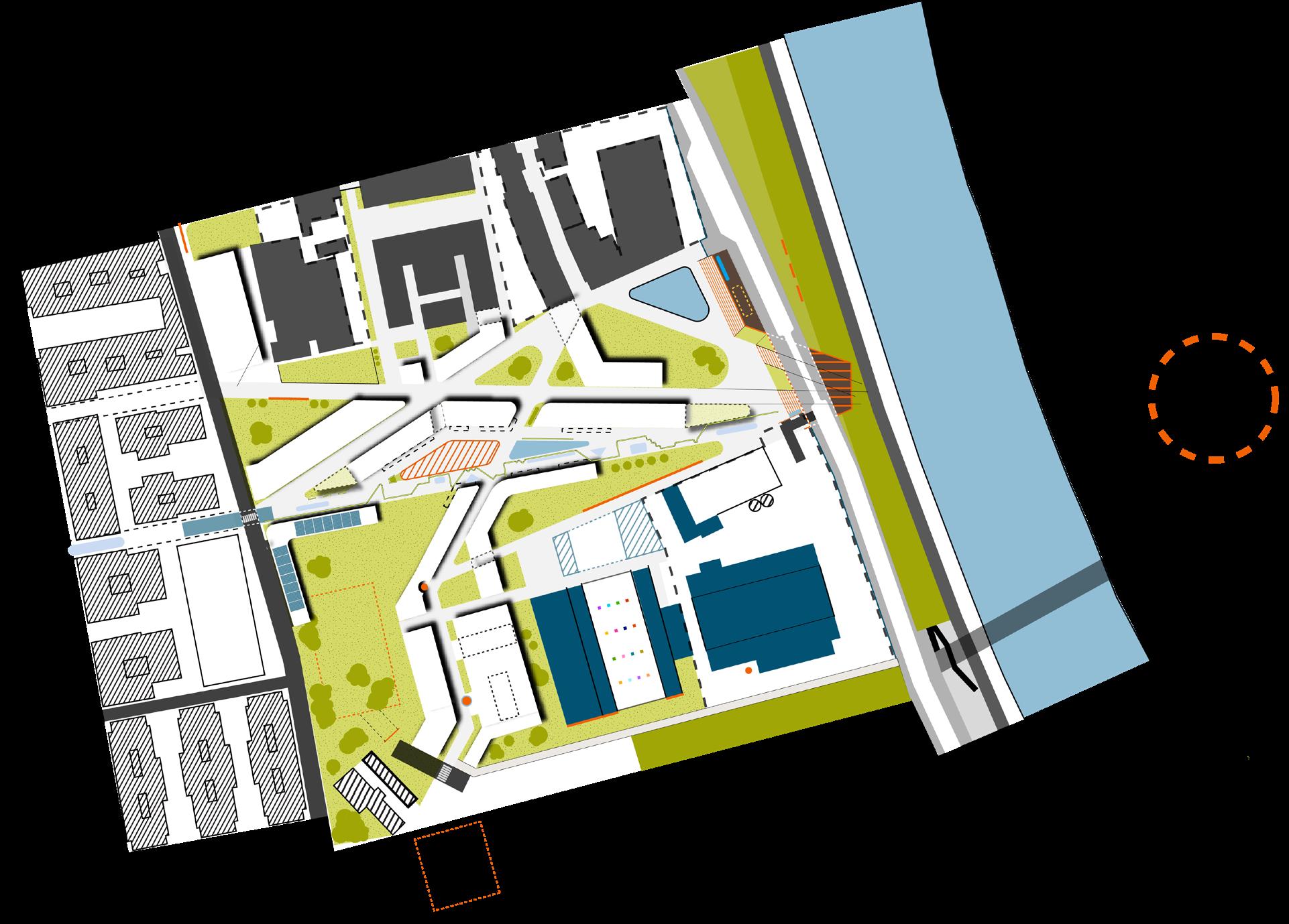 Inspired by the opportunity to create a living waterfront, our team seeks to enhance connectivity of the public waterfront, restore natural habitats, elevate the standard for urban waterfront resiliency and transform the way Philadelphians interact with the Delaware River. Our team identified a series of gateway corridors that all converge from the Northern Liberties neighborhood and extend from the river’s edge to a 'nexus' point on our site.