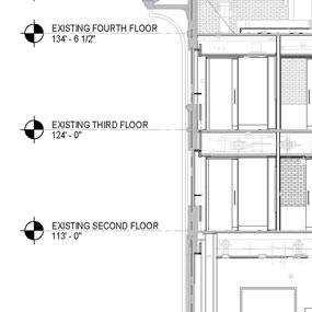 Client wanted to optimize site, letting required setbacks define its footprint. At 36,000 sf per level, the existing building expanded outward and upward. Existing concrete structure was strengthened, caissons and grade beams added. The top 2 floors are of steel construction. Dedicated AHUs for each floor located on the third floor with additional mechanical space on 5th level to support future build out of top 3 floors (all completed by 2023)