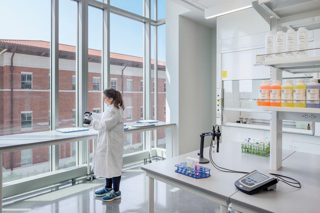 Involved in all phases of design. Individual focus on programming and early lab layouts and user group presentations, massing on tight site and connection to existing building details, and exteriors design implementation, material selection and 3D modeling.