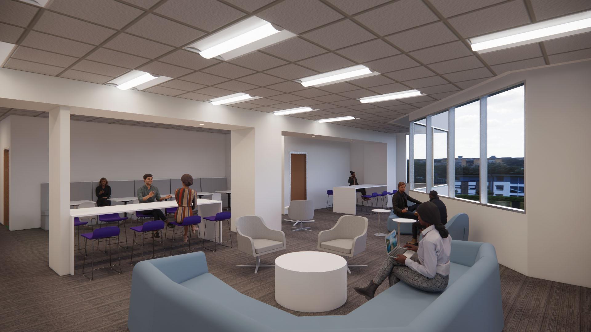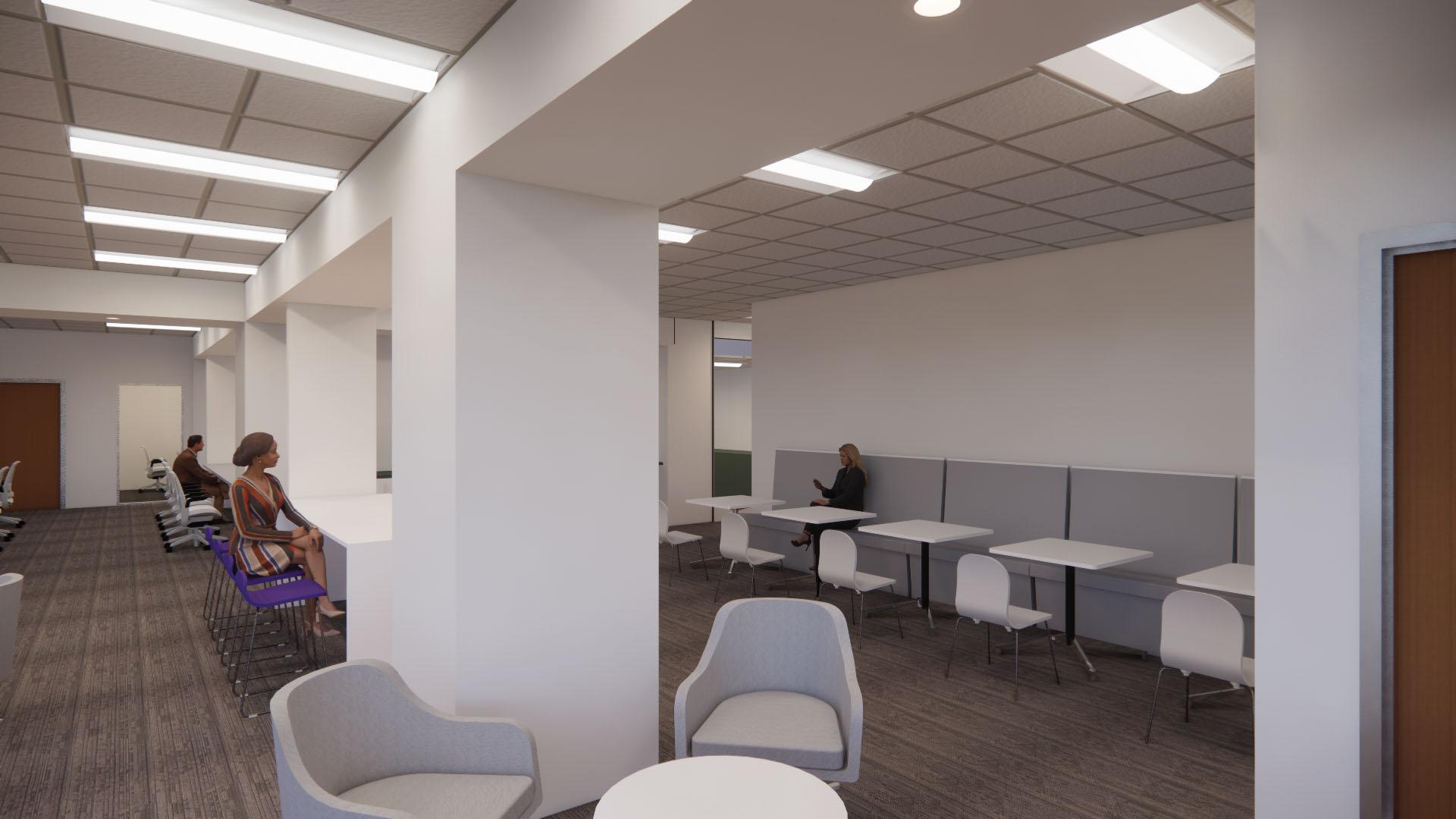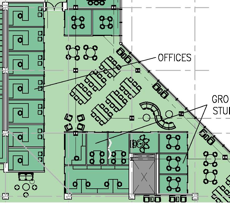 Library Commons - Provides a senseofcommunity,allowingimpromptuinteraction between users.Offers a varietyofspatialandseatingconfigurationstosuppportindividualorgroup workwithvaryinglevelsofprivacy-instillingasenseofsafety,securityandaccessto naturallightandviews.