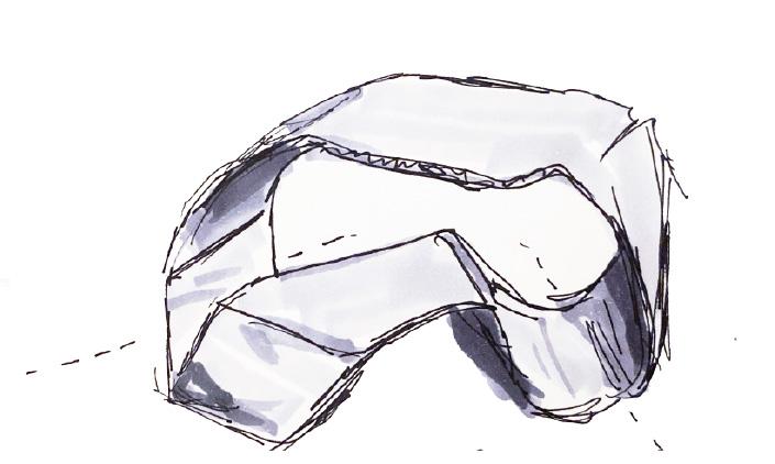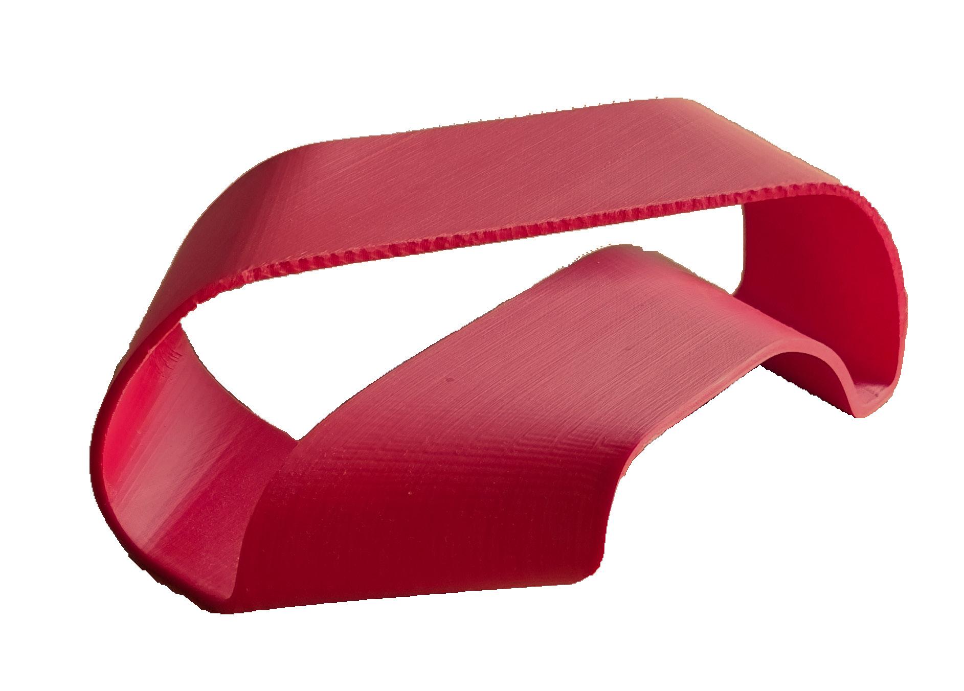 The concept was developed in Fall 2023 by Victoria Alsayed and her instructor, architect Federico Grazzini, during the second-year Furniture Design course, part of the BA in Interior Design at the Florence Institute of Design International. Both Victoria and Federico felt that this was too brilliant an idea to just let it sit in the archives, and decided to develop it further outside the school, trying to bring it to life. The first step was to refine the 3D model, gaining more refined control on the curvature of plywood while mantaining both the functional integrity of the piece and a certain geometric simplicity. A 1:5 scale physical model was then printed. Further exploration of technical issues and finer tuning is certainly necessary, but the designers feel that the product has now matured enough to be shared with a wider audience, and ideally meet a sympathetic manufacturing company.