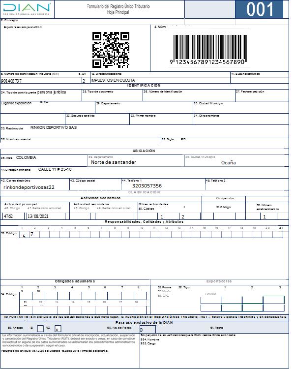 A FAVOR DE: RINKON DEPORTIVO SAS