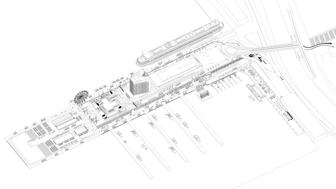 - Improvement of the territory at the upper level of the sea terminal. Creation of a multi-functional area that will be used for citywide festivals, concerts, fairs