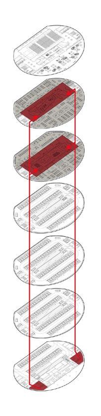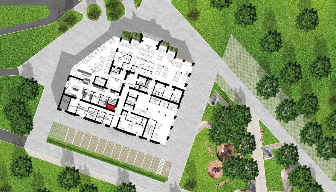 Over the parking are placing public and office ones. The core of the building are rooms. This is how we call a complex space of volumes and voids, what organises active social life inside the business centre. Rooms is that will encourage stimulate the creative and innovative approach to solve any tasks. The common space of rooms will unite specialists in friendly company, will be a neutral territory for presentations or conversations, will provide an opportunity to retire and even insulate if necessary. Availability nursery, general dining area or a small cinema and gaming, can smooth possible conflicts at the end of the day - Family vs. work