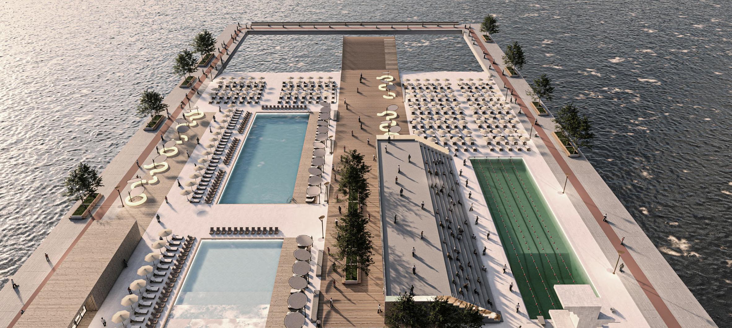 - Creation of a multifunctional public beach on the pantons, open to the public