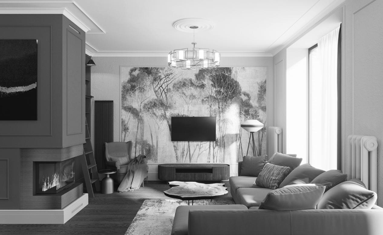 This house is for family with four children. The main task was to create a comfortable environment for life. The house should become a family nest where grown-up children always want to return. The task was to create a timeless space where the classic meets modern style. New modern furniture mixed with vintage restored furniture.
