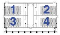 The auditorium is e uipped with a proved mechanical system of space transformation according to the format of the event. Adjustable are positions of stage and amphitheatre as well as arrangement of seats. In case of a symphonic orchestra performance the stage is in the middle with flat amphitheatre on one side and a balcony on the other. The U-type amphitheatre arrangement is good for performance art, acrobatic shows etc., in which body movements and gestures, involvement of audience are crucial. The wall between auditorium and courtyard being movable, another less traditional setting of space is available. The show takes place outdoors, the spectators surround the stage from all sides.