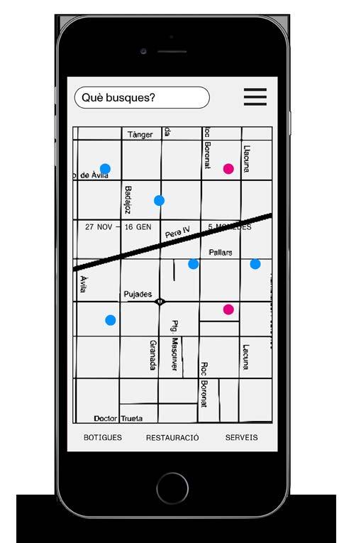 En una versió més avançada, un cercador per continguts permet a l’usuari explorar l’eix comercial del barri i descobrir nous llocs a través de les rutes plantejades en la proposta Poblenou Circular.