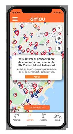 Una col·laboració entre l’app de mobilitat SMOU i l’Eix Comercial de Poblenou, perquè, en aparcar el cotxe o bicing, l’app notifqui a l’usuari sobre els comerços més pròxims a la seva ubicació.