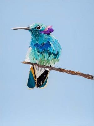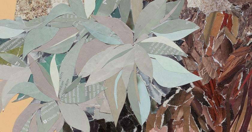 questioning about a certain plant or animal topic and quickly diving to investigating to learn. Once she has acquired the necessary information, she resurfaces with how to transmit her knowledge through her collages. Her series, Néctar, is the result of her restlessness of knowing more about the nectarivores.