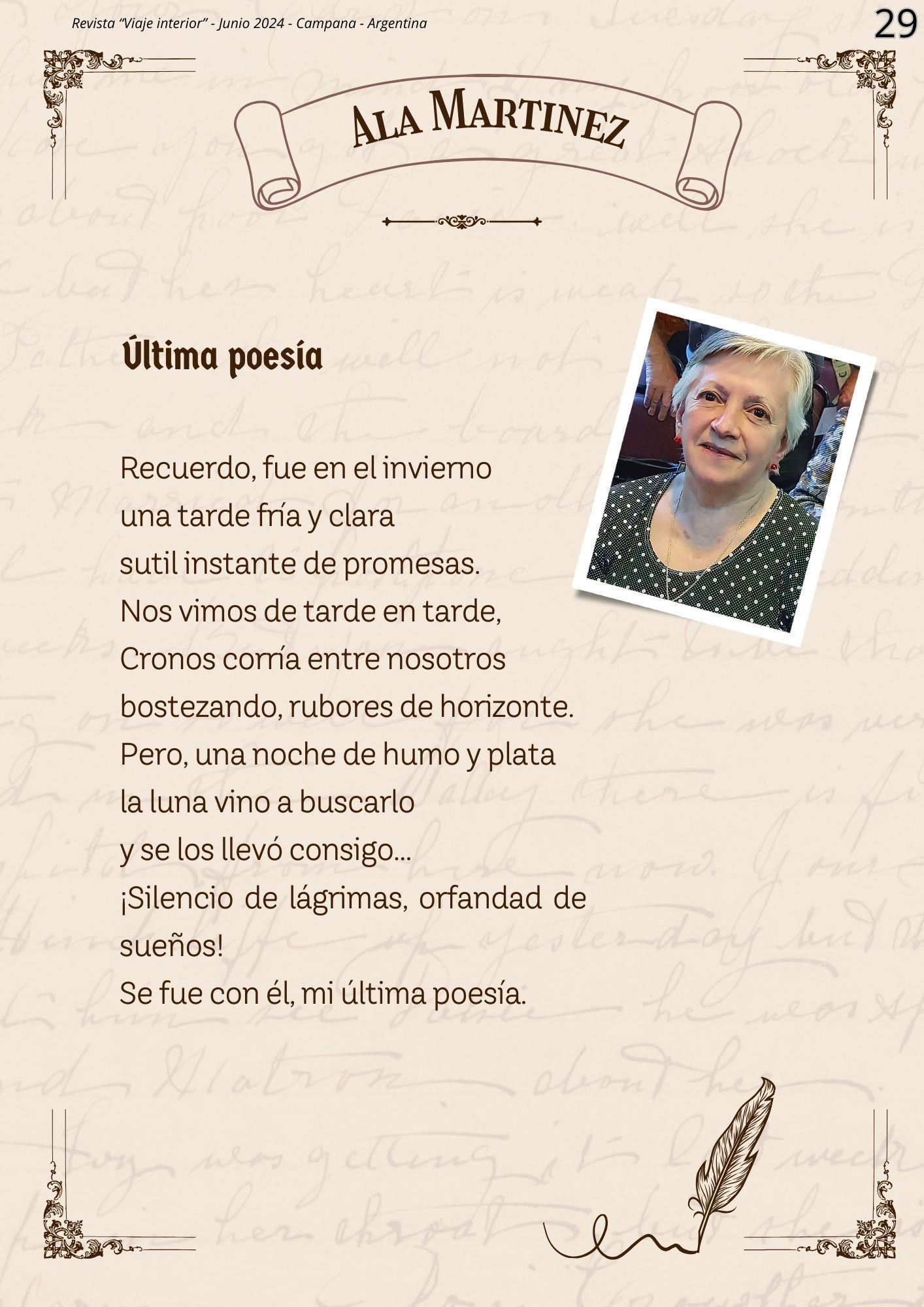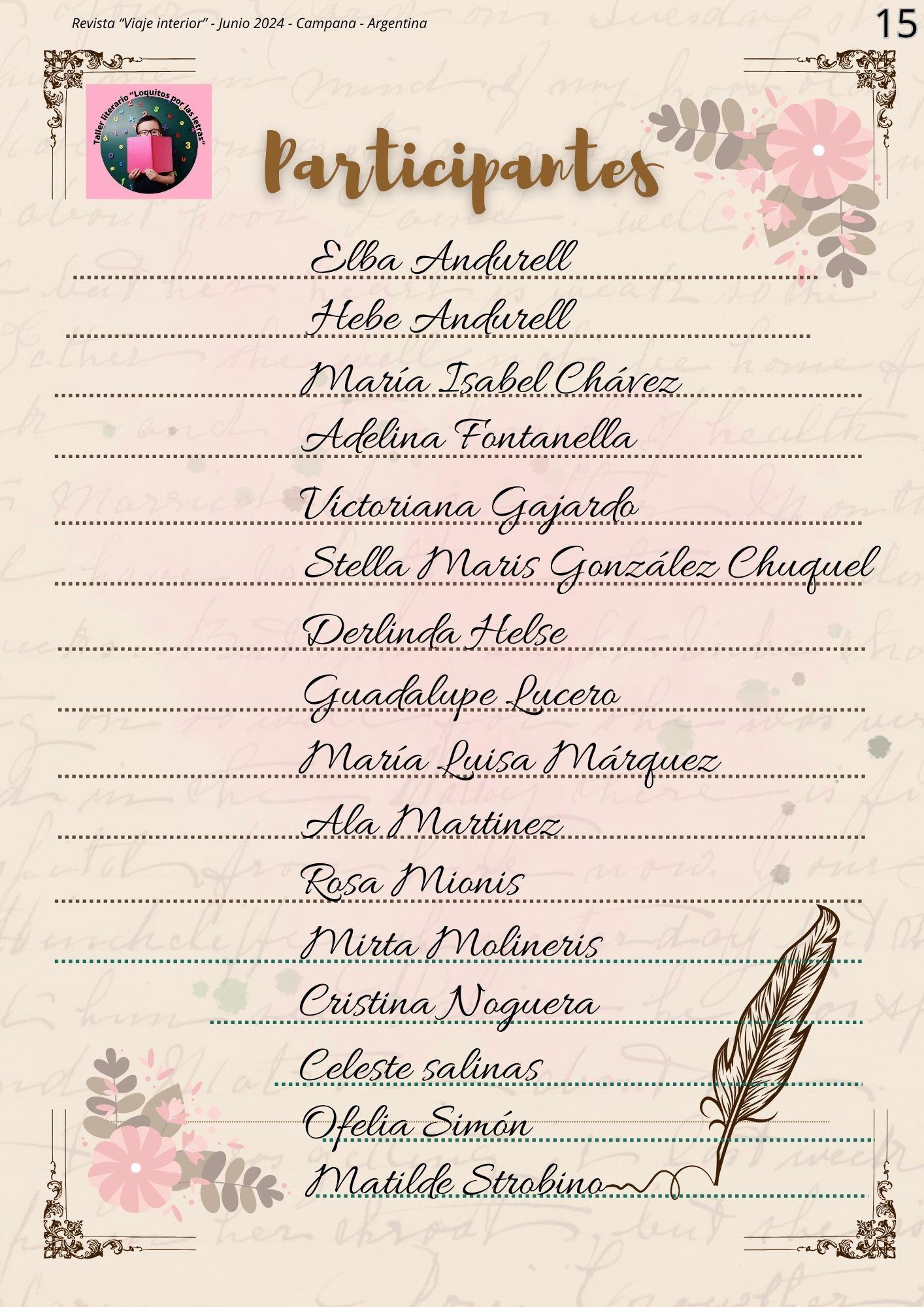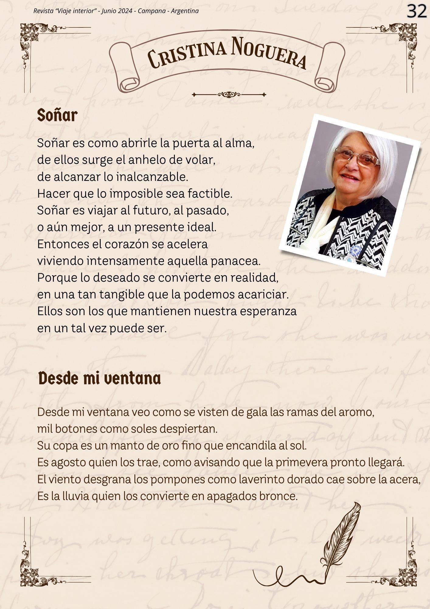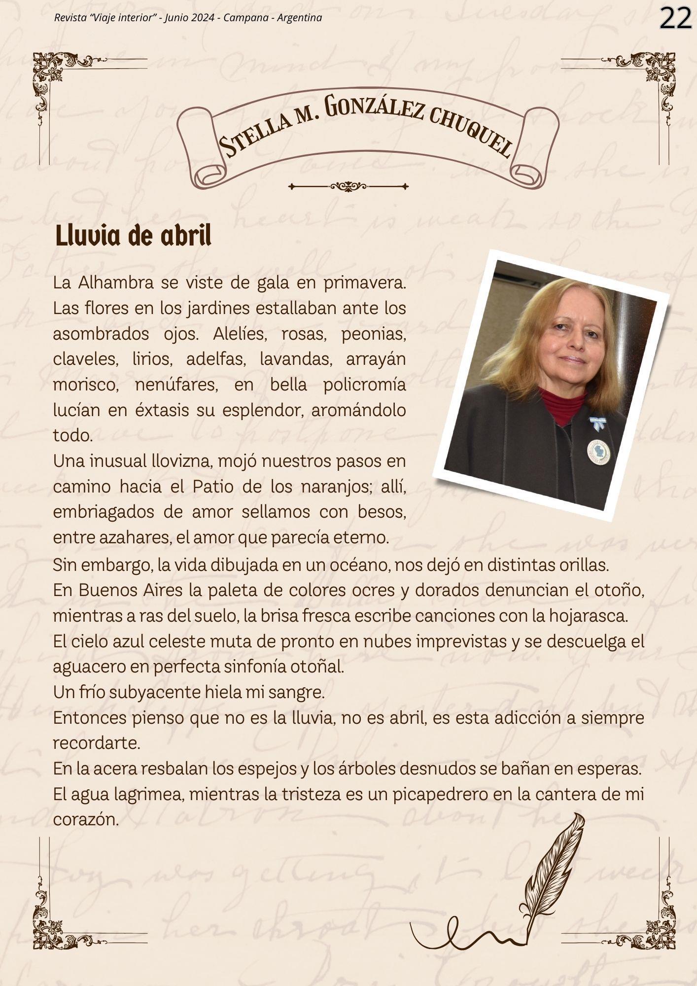 Esta nueva edición de la Revista Literaria "Viaje Interior", nos convoca a un espacio donde la creatividad y la expresión cobran vida a través de las letras En esta ocasión, nos embarcamos en un viaje aún más enriquecedor, con nuevas secciones, un diseño renovado y, por supuesto, la esencia que nos caracteriza: los poemas y cuentos de los participantes del Taller Literario "Loquitos por las Letras"