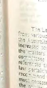 L W Reform Commi ttee mee ts onc e pe r month to consider all matters referred to the Bar Council Urces re lev a nt to law re form Such sources include, inter alia, the Law Council of Australia, I aw Refo rm Co mmi ss ion a nd member s of this The number of law reform projects co dera bly th e past f ew year s and places a stram on the resources of this Bar to cope with s l re It. Fort un at e ly t he Law Reform Committee is ably assisted by a number of subsa d memb e r of the Ba r. Much good work is done by these sub-committees. Sometimes in/ made o n reform t o this Bar in subjects requiring a complete examination of all the d th e subj ec t a nd re comm endations for its reform. To attempt to research and I S a pr ac tica l impo ssibility and the Bar's contribution in relation to such topics .e Me mb e rs of the Ba r do come across instances crying out for law reform during ce a nd the se matters shou ld be referred to this committee for consideration. It tha t th e Law Ref orm Committee can do something which is worthwhile and