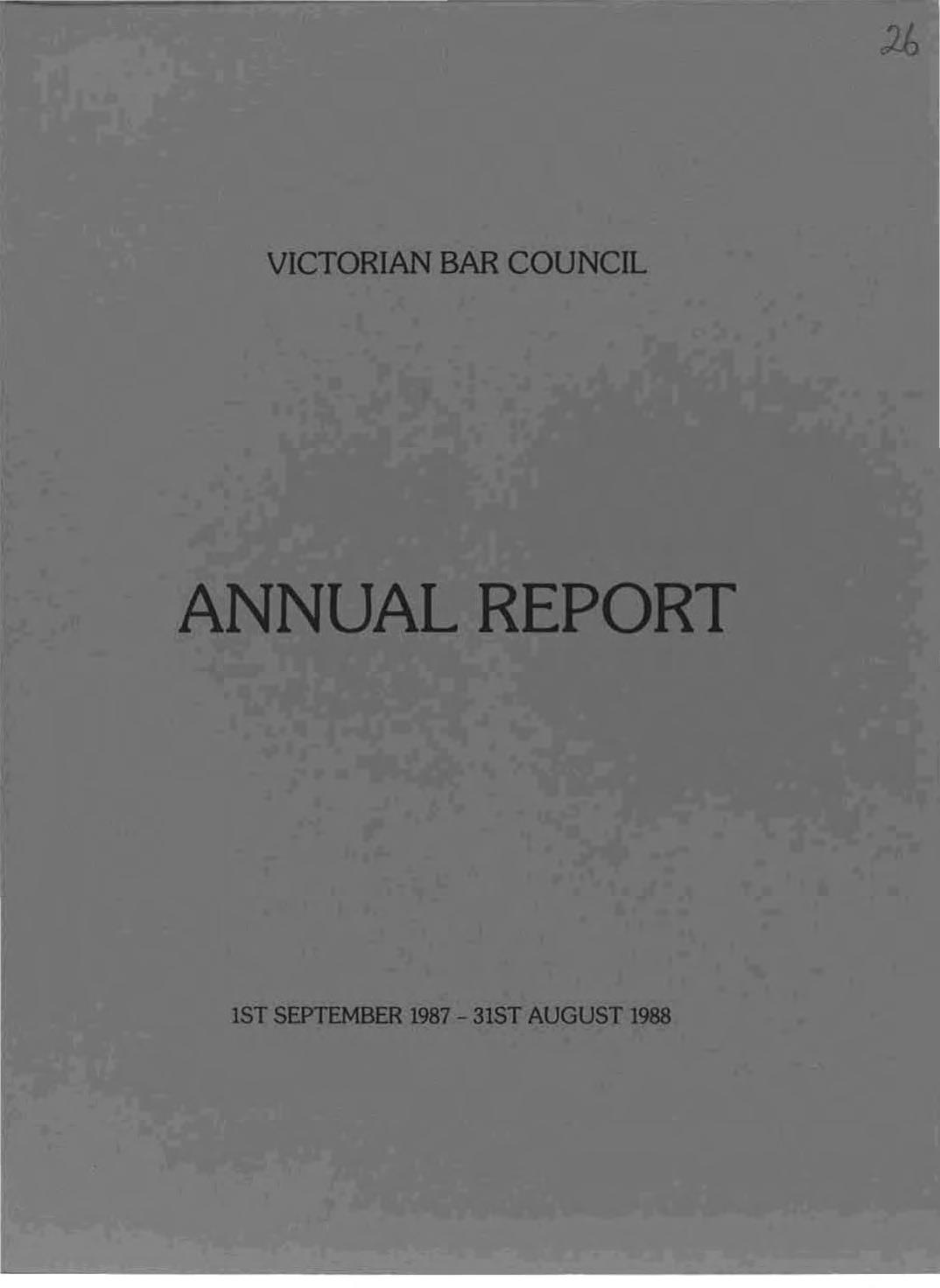 ANNUAL REPORT OF THE VICTORIAN BAR COUNCIL FOR THE YEAR ENDED 31ST AUGUST, 1988