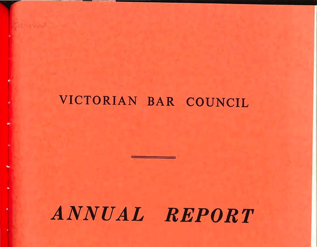 To be presented to the Annual General Meeting of the Victorian Bar to be held on 26th September, 1972 at 5 p.m. in lhe Common Room, Owen Dixon Chambers, 205 William Street, Melbourne.