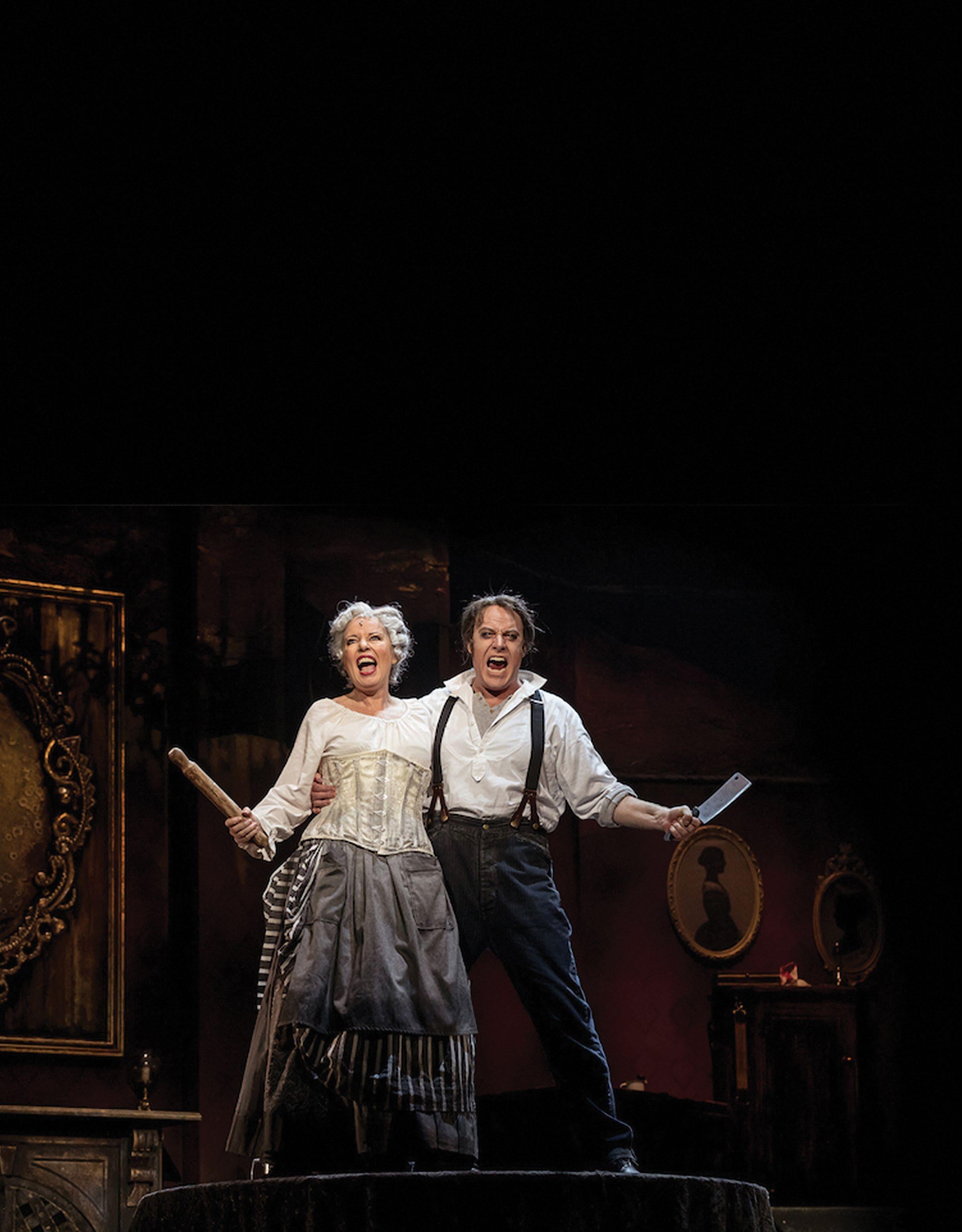 In the second act, everything is going to plan. Mrs Lovett, with the help of a young boy named Toby who had served Pierelli before his untimely death, remarks that business is doing well and they are ensuring that Todd’s victims are ‘strangers and such like wot won’t be missed’ so as not to raise any suspicion. When Todd slits their throats, a contraption that he has fashioned with the chair on which his patrons sit, allows him to drop them through the ground straight to the basement where they are ground into minced meat by Mrs Lovett and otherwise burned in the furnace.