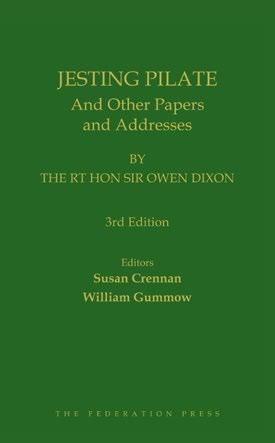 We celebrate the launch of a Third Edition of Jesting Pilate in this issue. This expanded edition elucidates Sir Owen Dixon’s standing, not only as a jurist, but as an exponent of clear legal writing. He also authored observations such as, ‘A barrister enjoys life but for a short interval, the interval between the time when he is doing nothing and when he is doing nothing else’.