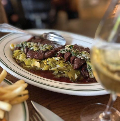 The starter of garlicky flat bread with fromage blanc has not changed in years, and for good reason—like a phone call from your favourite instructors about a new brief, it feels like the beginning of something wonderful. From there, kingfish crudo with a salty sour yuzu dressing, followed by shiny roast beetroots with smoked labneh, gave your beloved editors the protein and electrolytes they needed to continue their late-night proofing. Mussels on toast with green sauce and saffron aioli may not appeal to all, with strong flavours and diverse textures, but we scarfed them down. O’Connor beef, cooked over coals and served with braised leaks, fries and salad, was our reassuring main course. Chocolate and hazelnut puddings (dark and oozy) brought things to a close.