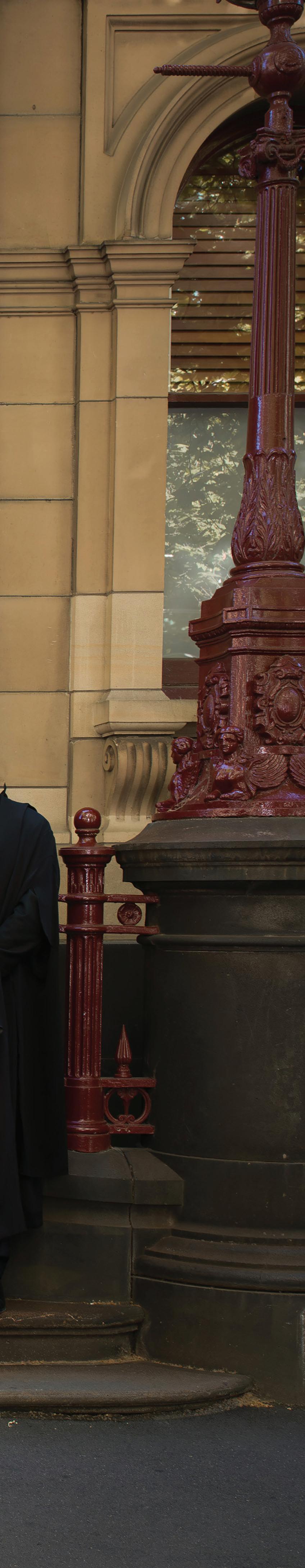 Editors: Luke Merrick SC, Banjo McLachlan, Maree Norton, Jesse Rudd VBN Committee: Edward Heerey KC, Stephen Warne, Ashlee Cannon, Harry Forrester, Sandip Mukerjea, Joel Silver, Emma Poole, Alexander Di Stefano, Lara O’Rorke, Michael Wyles Contributors (in alphabetical order): Haley Aprile, Garry Bigmore KC, Oren Bigos KC, Richard Boaden, Daniel Bongiorno, Ingrid Braun, Spike Buchanan, Julian Burnside AO KC, Daniel Calleja, Peter Cawthorn KC, Georgie Coleman, Alexander Di Stefano, Alexandra Douvartzidis, Tasman Ash Fleming, Annette Gaber, Peter Gray, Peter Hanks KC, Matthew Harvey KC, Sam Hay KC, Prof Jenny Hocking, Justin Hooper, Christian Juebner KC, Aggy Kapitaniak, Daniel Kiley, Paul Liondas SC, Akash Jacob Matthew, Chris McDermott, the Hon Cathryn McMillan KC, Matthew Meng, Luke Merrick SC, Ross Middleton KC, Carl Moller SC, Tony Moon, Emrys Nekvapil SC, Daniel Nguyen, the Hon Justice Richard Niall, Anna O’Callaghan, Glen Pauline, Emma Poole, Emily Porter SC, Hamish Redd SC, Jasmine Roeschmann, Liz Ruddle KC, Fiona Ryan SC, Siobhán Ryan, Temple Saville, Georgina Schoff KC, Joel Silver, Rear Admiral The Hon Michael John Slattery AM RAN, Paul Smallwood, Alexander Solomon-Bridge, Michael Stanton, Dan Star KC, Brian Walters AM SC, James Waters, Sarah Weinberg, Michael Wise KC. Photography/Images (in alphabetical order): Peter Bongiorno, Alessia Massara, Gitt Morton, Midjourney AI. Nicky Neville-Jones, Joshua Yu, Publisher: Victorian Bar Inc., Level 5, Owen Dixon Chambers East, 205 William Street Melbourne VIC 3000