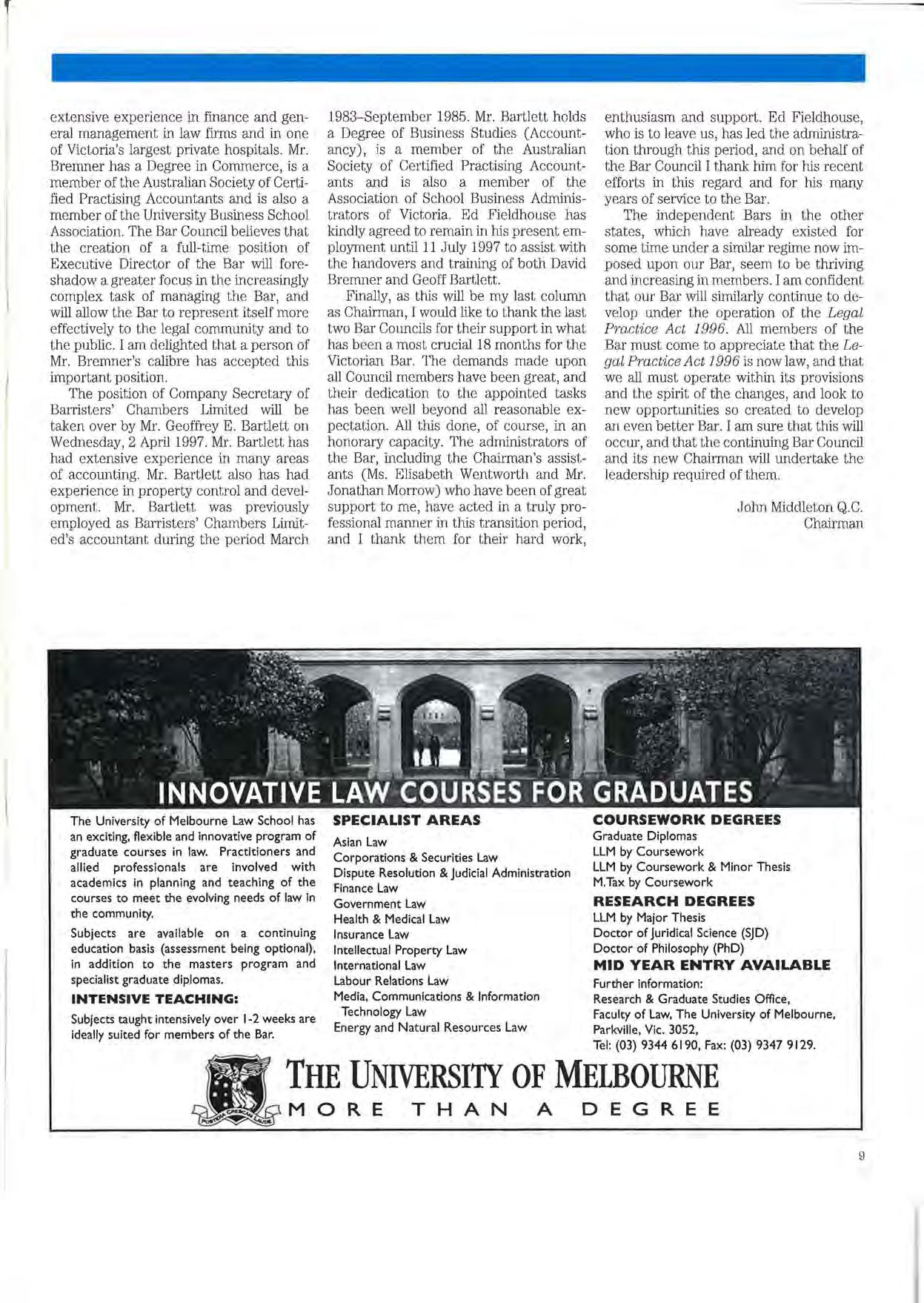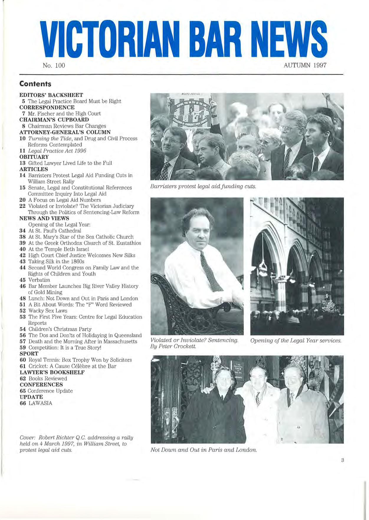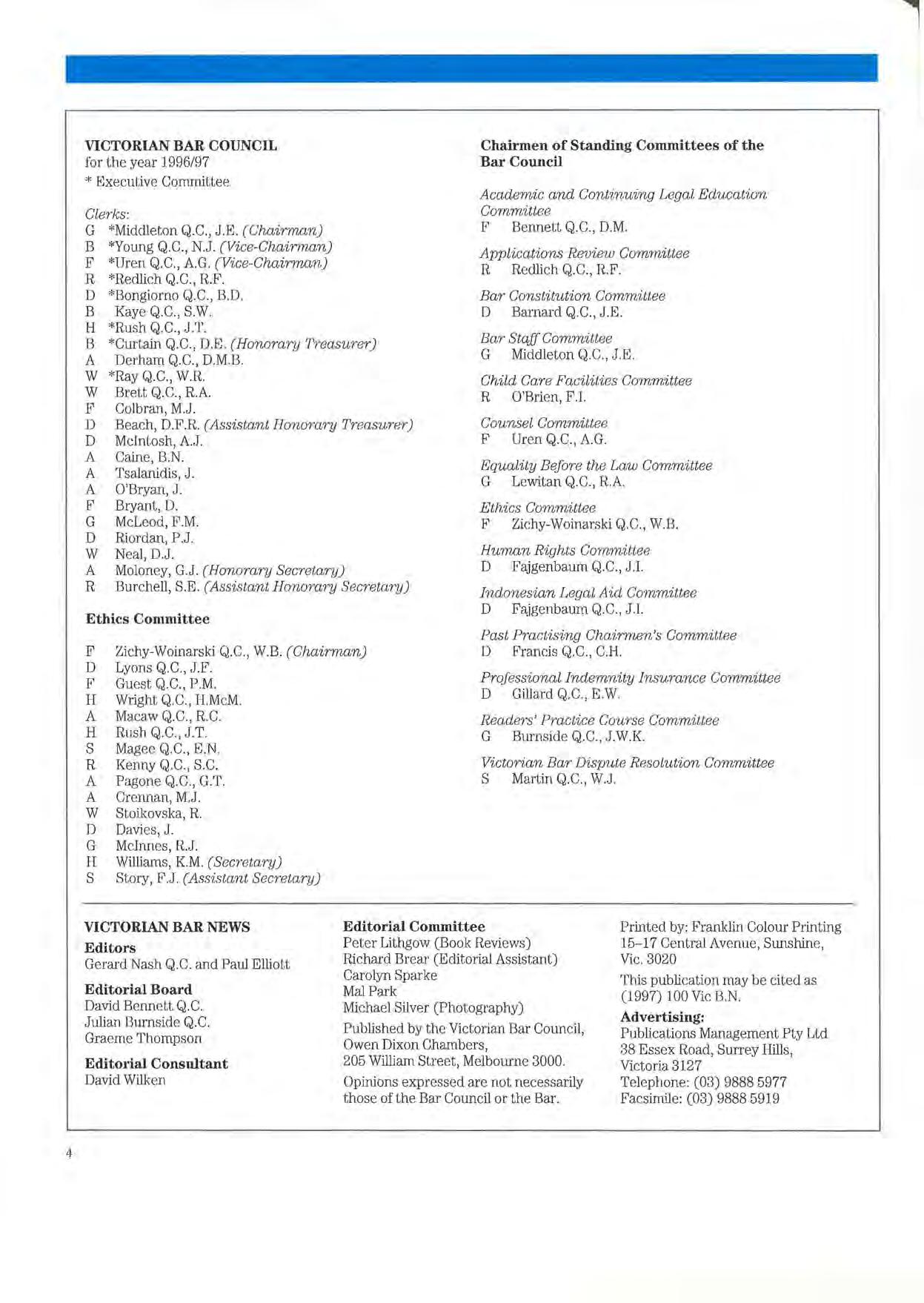Published by the Victorian Bar Council, Owen Dixon Chambers, 205 William Street, Melbourne 3000.