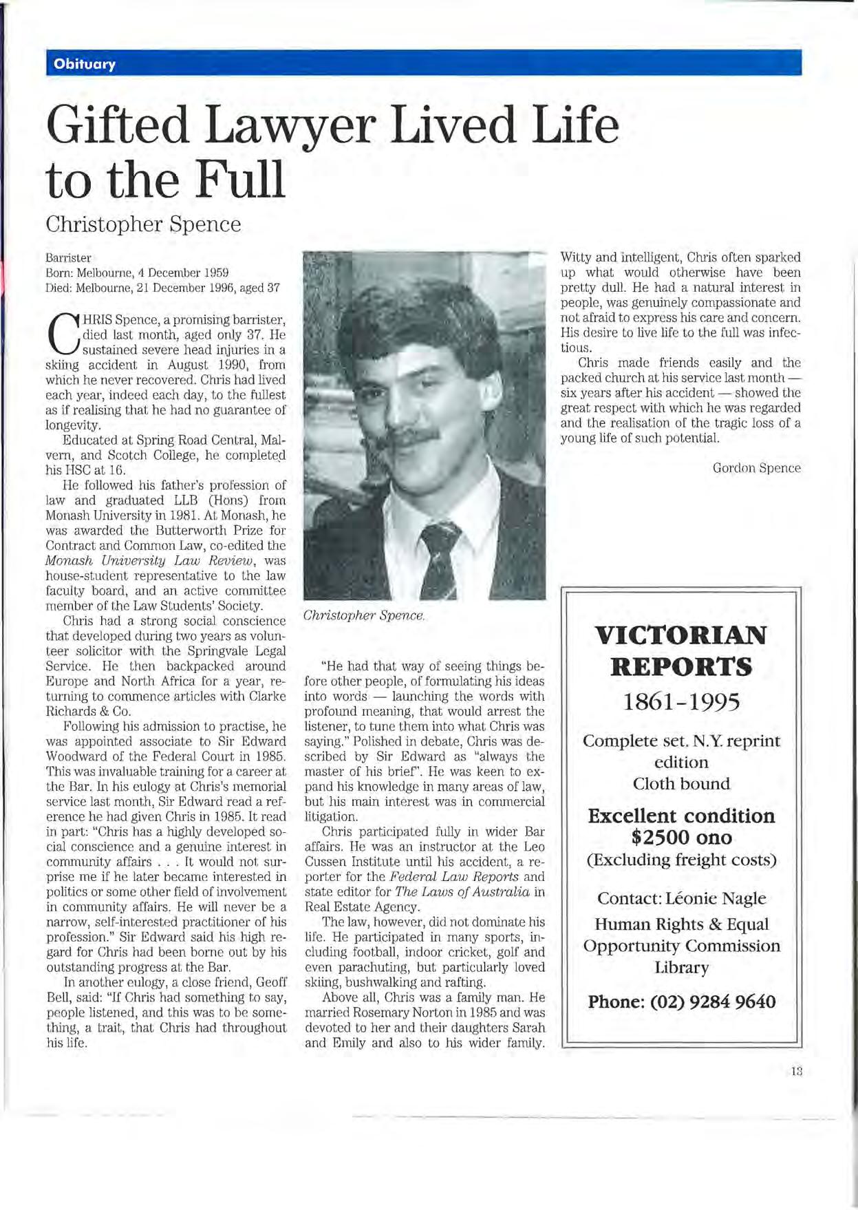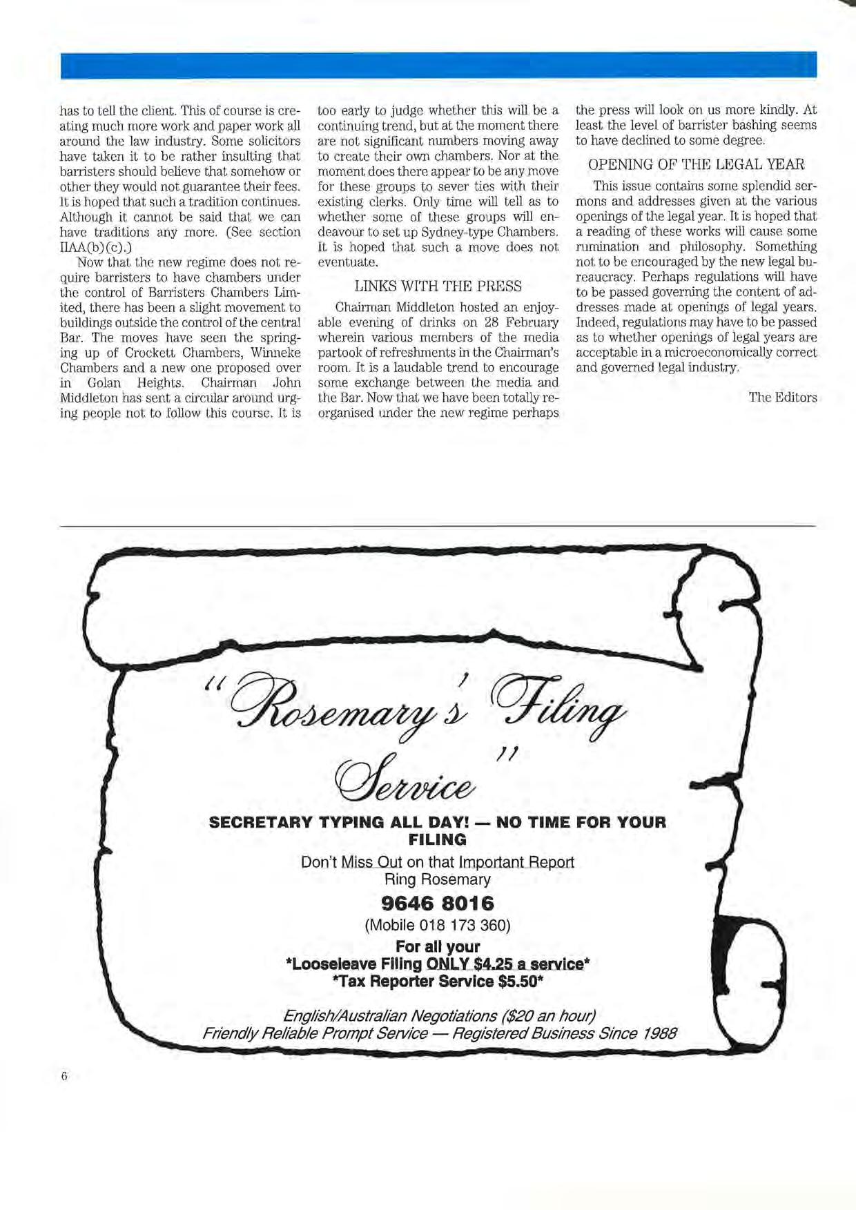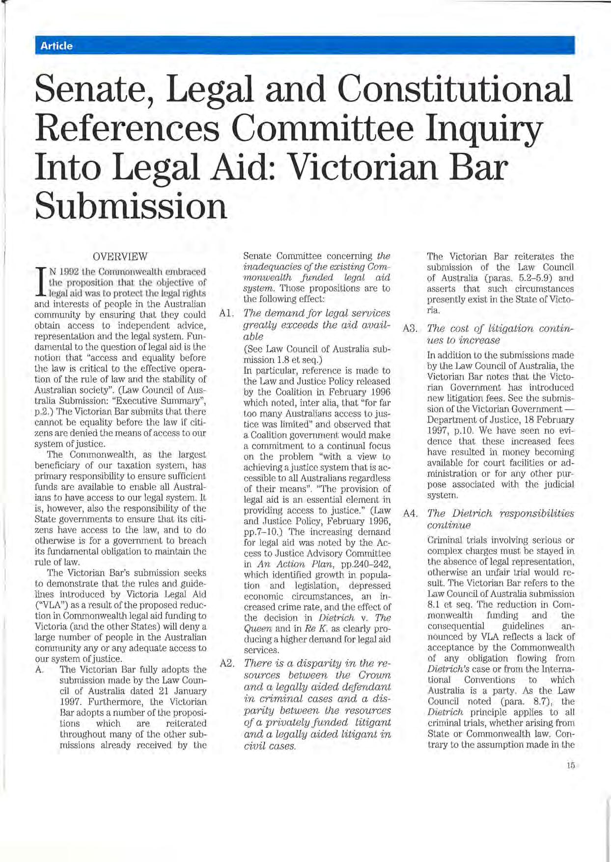 Published by the Victorian Bar Council, Owen Dixon Chambers, 205 William Street, Melbourne 3000.