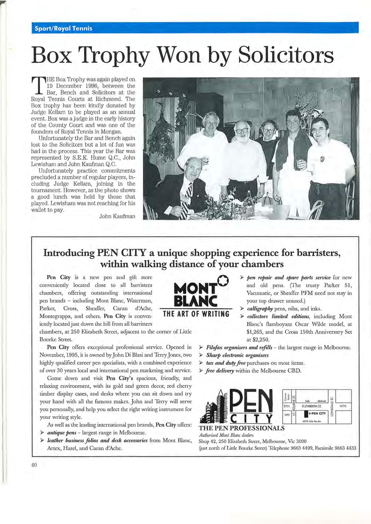 What was surprising, was that it turned out that the whole editorial board of the Bar News had also been born on the 1st January 1900. Historically we have accepted that this is correct. Full investigations have found that the whole of the Victorian Bar was indeed born on the 1st January 1900. Each person had been told this in the new registration form which adds a lovely degree of conformity to those at the Bar.