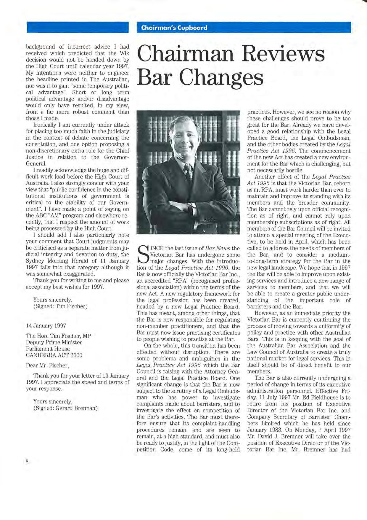 VICTORIAN BAR COUNCIL for the year 1996/97
