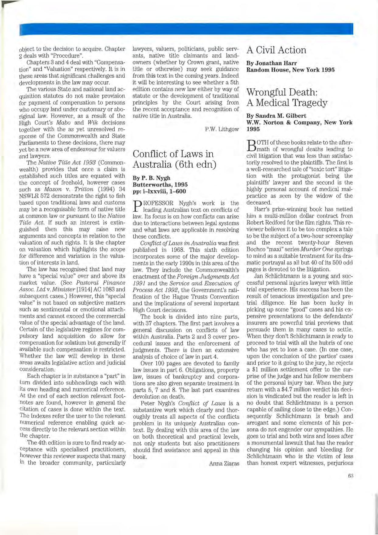 Peter Nygh's Conflict oj Laws is a substantive work which clearly and thoroughly treats all aspects of the conflicts problem in its uniquely Australian context. By dealing with this area of the law on both theoretical and practical levels, not only students but also practitioners should find assistance and appeal in this book.