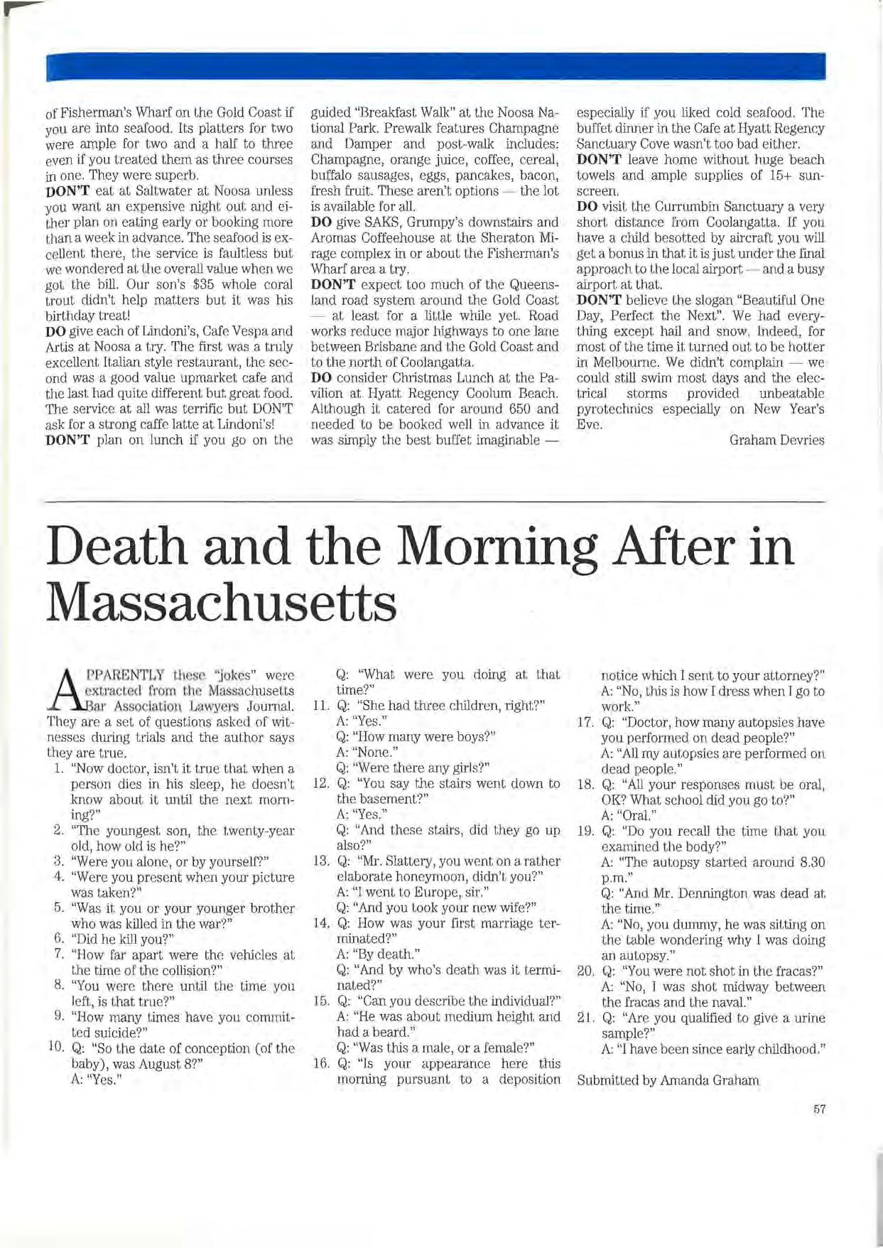 2-19 July 1997: Bali. Australian Lawyers Mediation and Negotiation Conference. Contact Rona Bowrey. Tel. (02) 9692 9022, Fax (02) 9660 3446.