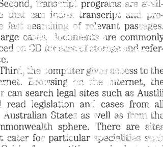 The way the materia l is stTIlcLured overall is by software type, and by specific COnlen t providers. For example, chapLer :3 on the World Wide Wcb includes instru ctions for using Netsca pe Navigator, Internet 8xpl orer, and Adobe Acrobat to access the Web, and then how to search using various search engines . Chapter 4 covers the lise of e -mail and how to prepare and use mailing lists, and the software specific to these functions. Part 2 of the book - covering chapters 5 to 9then looks in depth at each of the major legal content p roviders Buttenvort.hs, Lexis-Nexis, LBC lnformat ion Services, Scale PLUS, and AustLll - and how to mak e the most of what each offers. The Index is well compiled and refers to cnt r ies by parag raph nwnhcrs, whicl\ in the main text a re well-designed, hi g hlighted and easy to fmd.