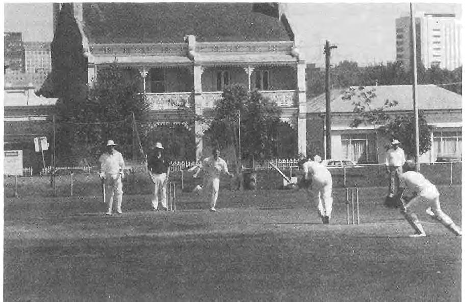 The recently published Volume Three of HRV, The Early Development of Melbourne 1836-1839, contains a wealth of illustrations including many superbly reproduced coloured plates and a detailed map of Melbourne buildings in 1838. Several of w.F.E. Liardet's primitive watercolours, painted much later from memory, had been included to flesh out the brief entries in the early court registers. One such drawing depicts the rudimentary shack which was converted into a Police Office-cum-Magistrates' Court by Captain Lonsdale, with the nearby watchhouse built by convict labour in 1838 and a makeshift prison.hospital shed, with the stocks in the foreground. This small correctional complex stood near the present forecourt of the National Mutual Centre building in Collins Street In 1838 the buildings in the town of early Melbourne mostly lay in the rectangle bounded by Spencer and Swanston Streets, and by Flinders and Bourke Streets, so that the stocks were set up in the civic centre of gravity (or hilarity?).