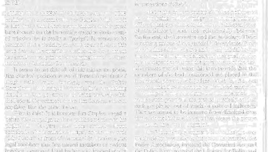 made upon members of the judiciary they may act as a catalyst for the commission of acts of violence against members of the Bench as, unfortunately, has happened in the Family Court. Further, such attacks may lead to the possibility of the institution of private defamation proceedings by a member of the Bench against a Parliamentarian and/or the press. We may have the situation arising where the Chief Justice, the Chief Judge and individual Judges seek to defend Judges and themselves in the media from unwarranted attacks. These consequences would be most undesirable.