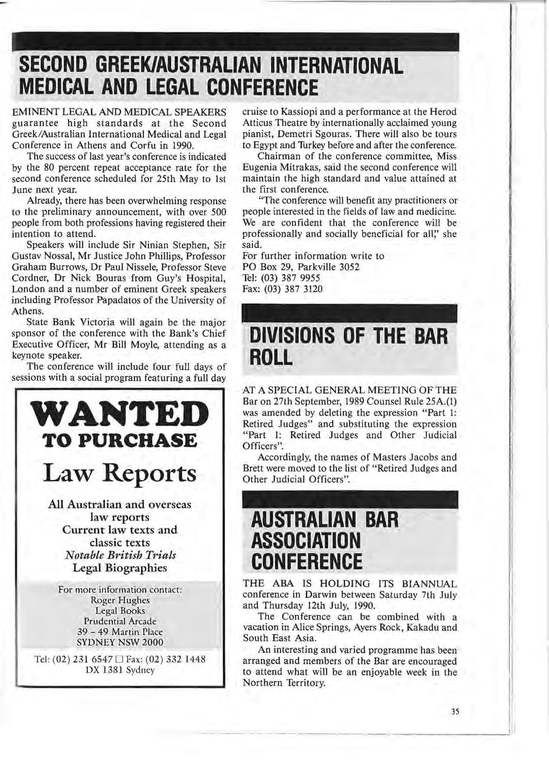 Once again Bar News has come into possession of an article not fit to print in a Melbourne daily newspaper - this time it is The Sunday Age of 24th September 1989.