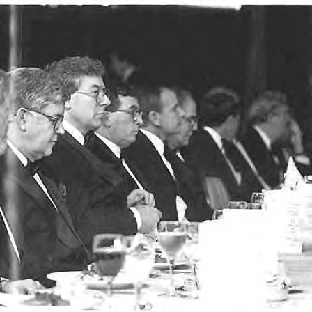 marked upon Midnight came and went unnoticed except for the long line of Commonwealth cars queued up to convey the bulk of guests safely home. At 1 o ' clock th e di e hard s still re mainin g we re dr iv en into th e cold fro sty morn by the unre len ting and unre m i tt i ng bagpip es. At th at st a ge thi s re porter d e cided d iscr et ion wa s th e better part of va lour an d chose to re trea t ho m ew a rd s whil st a sizeable portion of Association members remained still deciding where to go on to next.