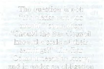 6. It was resolved that there be imposed on each clerk an obligation to lodge in each financial year with the Bar Council and with the clerk's List Committee a confidential statement of actual gross income and expenses of the clerking business for the previous financial year containing sufficient detail to reveal the true costs of the clerking operation (3 March 1991). Implementation of this motion was subsequently deferred (21 March 1991) and the motion itself rescinded (13 June 1991)