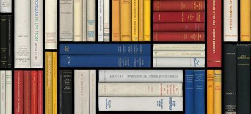 The studio’s focal point is the bookshelf, intricately designed with Mondrian-inspired configurations featuring vivid primary colors, creating a dynamic and visually striking centerpiece.
