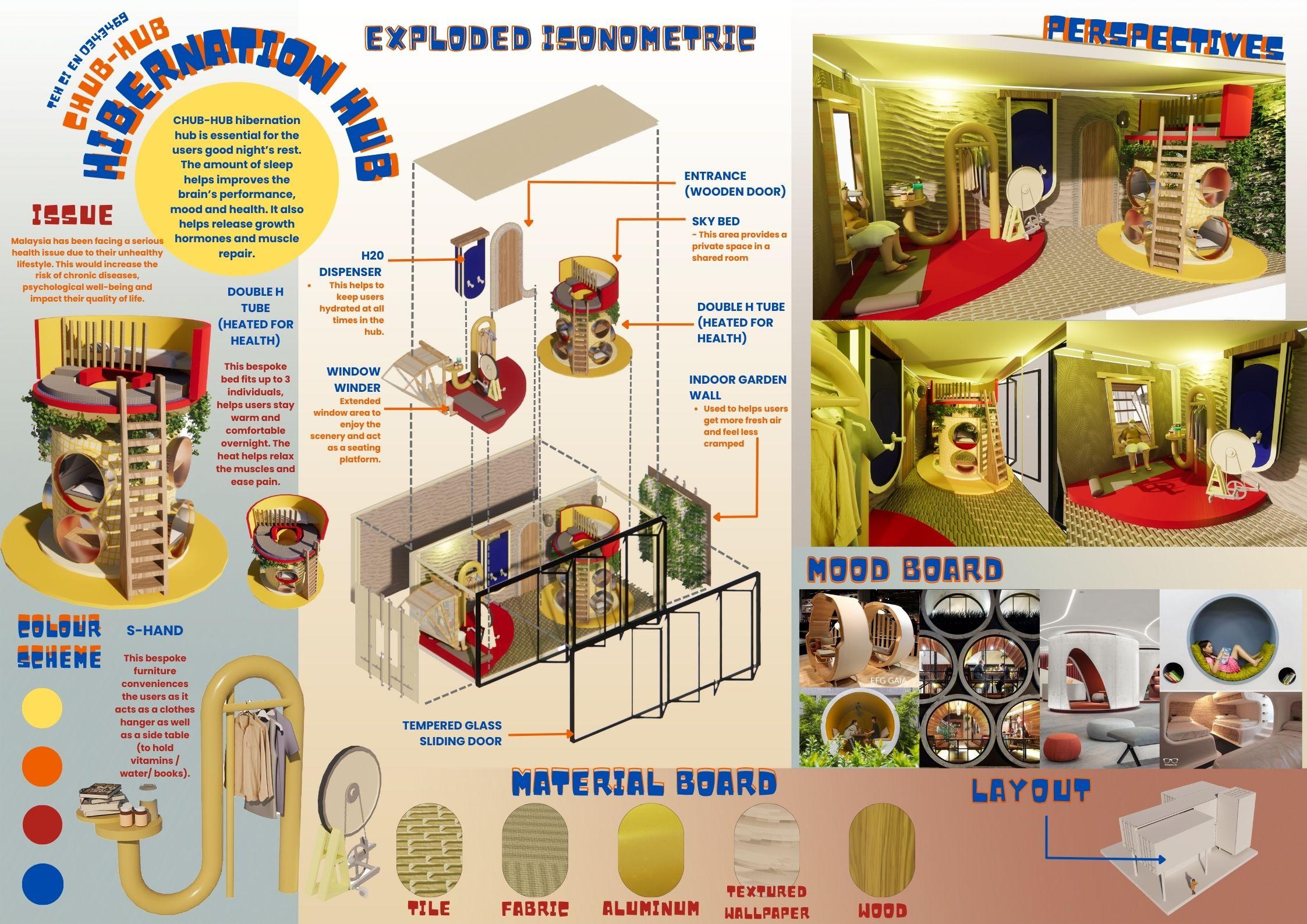 In this project, our team collaborated with the MLE team to create an off-grid habitat within the dimensions of a 12M (L) x 2.4M (W) x 2.7M (H) container. Our main objective was to design an innovative off-grid tiny home that defied conventional room-kitchen-dining layouts. Instead, we aimed to develop unique and practical living experiences by reinventing traditional spaces and proposing a minimum of 5 innovative areas that would cater to the targ