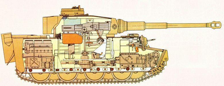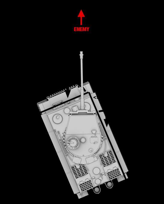 (Interior de un Tiger H1)fácilmente penetrado de frontal por los proyectiles de los tanques enemigos, por este motivo, los conductores del Tiger H1 usaban una técnica que se conoce como angulación.