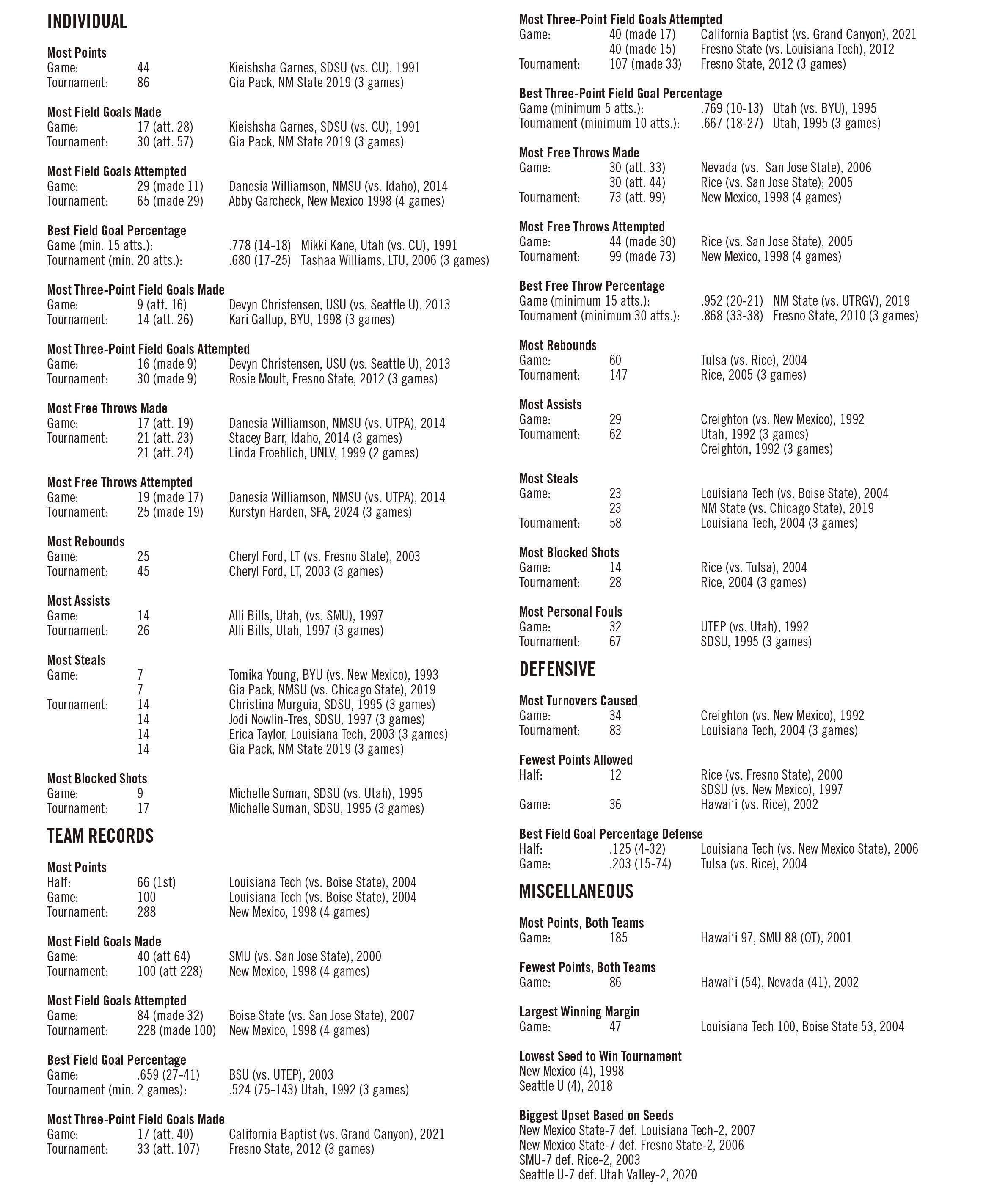 Women’s WAC Tourney Record: 0-3