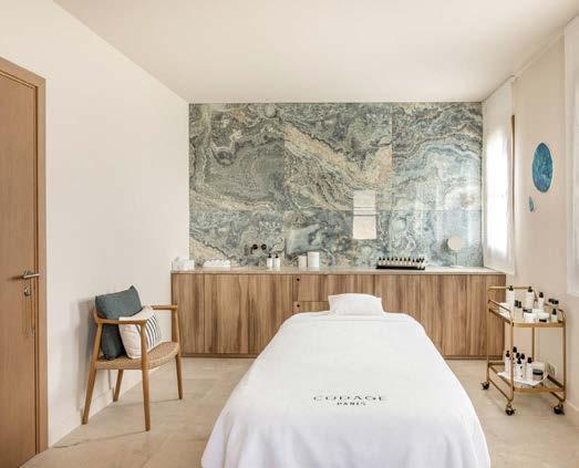 masaje y baño de barro. Destaca su cueva de sal del Himalaya para abrir las vías respiratorias practicando la haloterapia, así como su elegante e intimista salón de pedicura y manicura. En este salón ya se pueden empezar a probar los cosméticos eco de la firma parisina Maison Codage.