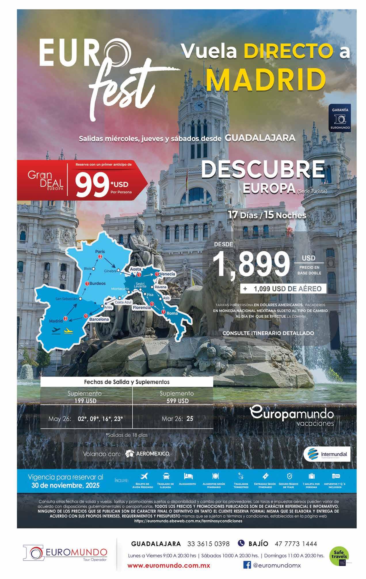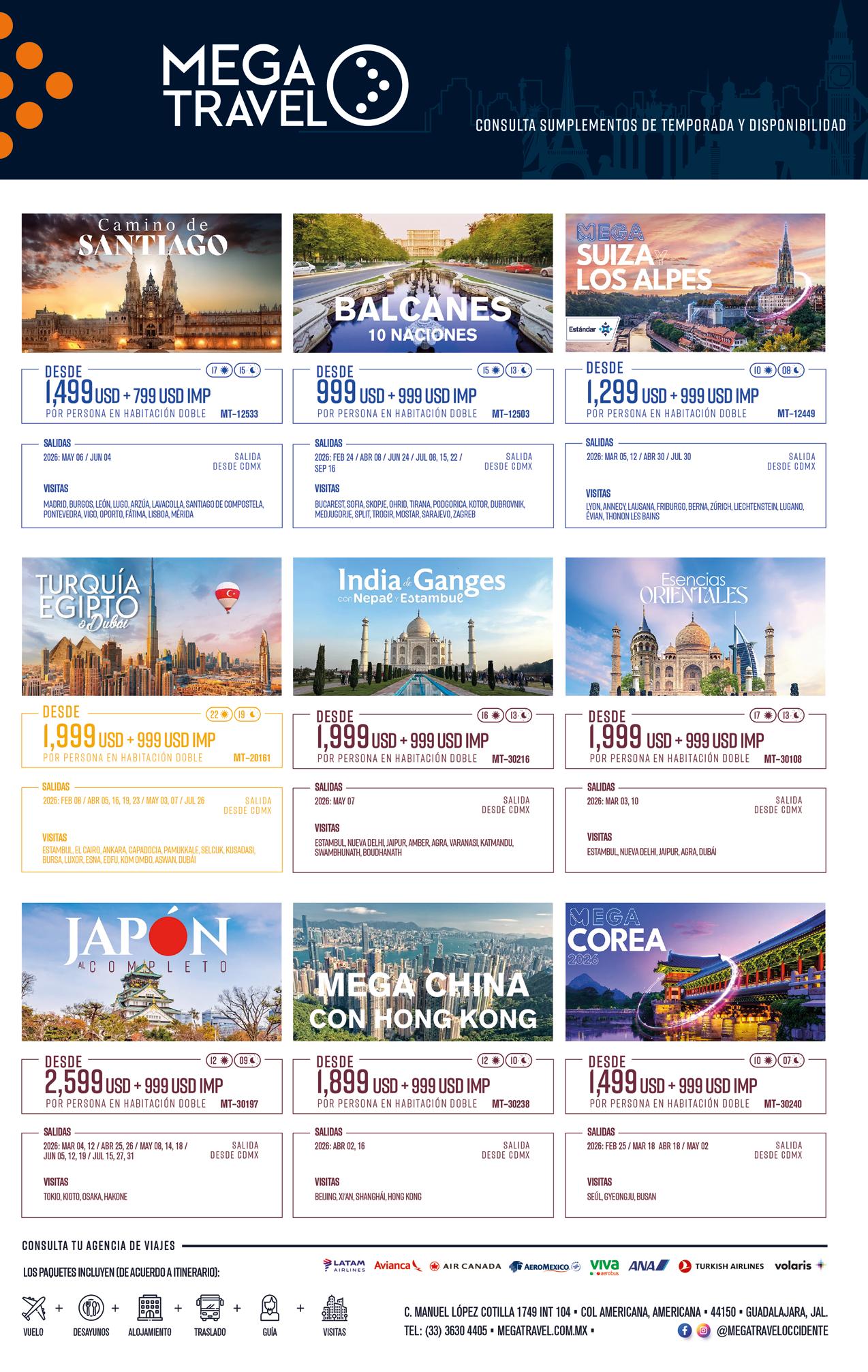 Mega Canadá, con salida desde Guadalajara y operado por Mega Travel, invita a los viajeros a descubrir lo mejor del Este canadiense mediante un recorrido cuidadosamente diseñado para quienes buscan una experiencia completa, cómoda y repleta de momentos inolvidables. VIDALTURISMO, ESTRATEGIA INFORMATIVA PARA EL VIAJERO. REVISTA MENSUAL, EDICIÓN DE NOVIEMBRE DEL AÑO 2025. No 163. CIRCULACIÓN GRATUITA, EDITOR RESPONSABLE DANIEL GUERRERO VIDAL. EL CONTENIDO DE SUS ARTICULOS ES RESPONSABILIDAD DE SUS AUTORES Y ANUNCIANTES. DERECHOS RESERVADOS. NÚMERO DE CERTIFICADO DE RESERVA DE DERECHOS AL USO EXCLUSIVO OTORGADO POR EL INSTITUTO NACIONAL DEL DERECHO DE AUTOR 04-2022-081212370900-102. NÚMERO DE CERTIFICADO DE LICITUD Y CONTENIDO: 17566. REGISTRO DE MARCA 1671100 DOMICILIO DE PUBLICACIÓN Y DISTRIBUIDOR CALLE CARNERO 3447 C.P. 45070 TEL: +523317600003 COL. LA CALMA; ZAPOPAN, JALISCO. PUBLISHING COMPANY ALIENIGENART. DOMICILIO: ISABEL PRIETO 767 ITALIA PROVIDENCIA