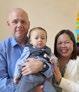 Karl Kirk Damgaard Andersen på dåbsdagen sammen med sine forældre: Mathilde og Mathias, Øster Lem.