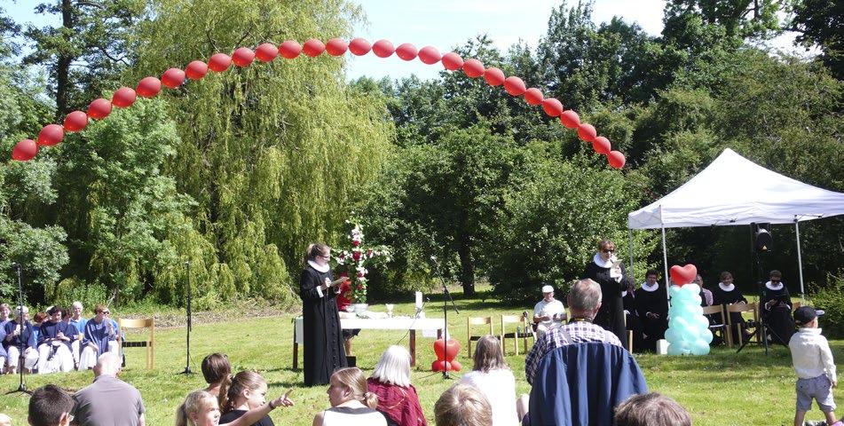Friluftsgudstjeneste i præstegårdshaven ved Høje Taastrup Kirke Ikke gudstjeneste i Fløng Kirke.