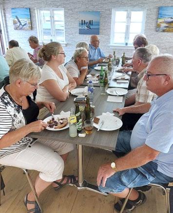 majestætens besøg for nogle år siden og meget andet. Jo, der er skam intet, der er så skidt, at det ikke er godt for noget. Dog syn tes vi, at det var synd for Arne, at vi måtte efterlade ham og bussen, men jeg er nu sik ker på, at han kom godt hjem. Efter nogen forsinkelse ankom vi til Cafeen i Ordrup, hvor vi indtog en udsøgt frokost med alt, hvad hjertet kan begæ re. Sild, fiskefilet, lun leverpostej, flæskesteg, oste i alverdens afskyg ninger og meget mere. Uha, man bliver jo helt sulten….