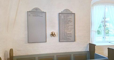 Kvislemark Kirke havde en præstetavle hængende i våben huset. Og den var blevet fyldt helt ud – Gunver Birgitte Niel sen stod på nederste linje. Nu er der blevet lavet en tavle mere, hvor præsterne Benedikte Brisson og Tom Thygesen Daugaards navne er påført allerøverst. Der var desværre ik ke plads til to præstetavler i kirkens lille våbenhus. Derfor er de to præstetavler blevet hængt op bagerst i kirkeskibet, og en ny opslagstavle er blevet hængt op, hvor præstetavlen tidligere hængte.