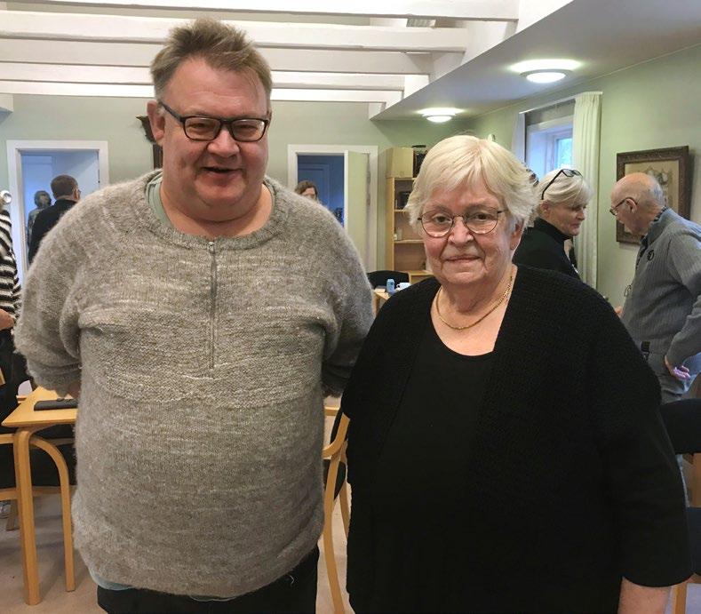 Og i Odby og Søndbjerg kirker er det, som om Ellen Pedersen altid har hørt med til den faste stok. På billedet ses menighedsrådsformand John Søndergaard og Ellen Pedersen. Menighedsrådet takkede ved receptionen den mangeårige kirkesanger for lang og tro tjeneste og for den velvilje, hun stedse har udvist. Red.