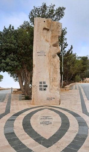 Udenfor helligdommen stod der et anderledes kors. Den italienske kunstner, Giovanni Fantoni, har skabt en symbolsk figur af Jesu kors omslynget af den kobberslange, som Moses får bud om at