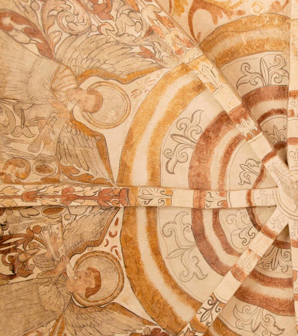 Som en praktisk løsning har kirkens betjening beklædt bænkene med tæpper. Der er derfor