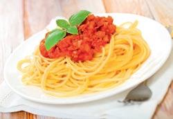 Vi spiser spaghetti med kødsovs kl. 17.45, så alle kan nå hjem til puttetid.