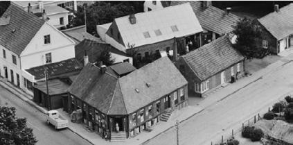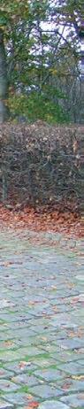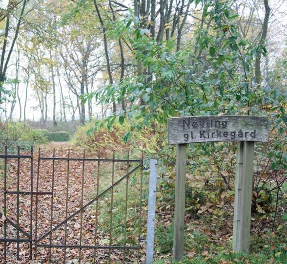 Ind i indkørsel forbi jernporten til venstre på hvid gavl.